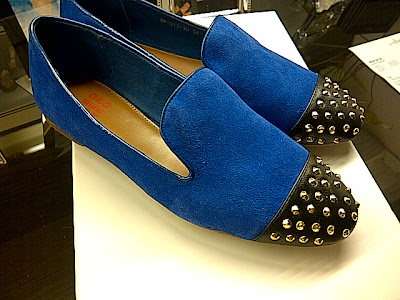 So ever since I saw the first pair of velvet slippers out in stores and online, I thought they looked pretty cool. They're definitely hipster though, and I wasn't sure if I'd be able to pull them off. Well fast forward to today, when I was casually browsing the new LAB store at Queensway Plaza (loving it by the way), I came across this pair from Pedder Red. Something about the shape makes them easier to pull off and I think I look pretty cool wearing them - if I do say so myself! Haha. They're made of blue velvet and they have studs in the front. Check 'em out!